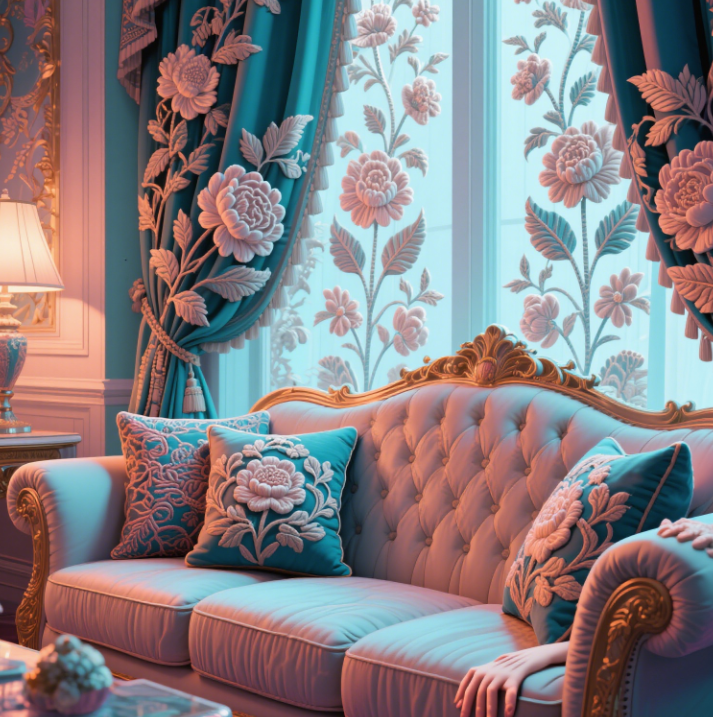 O tecido Jacquard se distingue produzindo não apenas a profundidade visual, mas também tátil. Alterando seletivamente a estrutura do tecido, os padrões podem ser elevados ou recuados, gerando textura real e criando uma superfície tridimensional. Isso permite que designs como flores ou motivos esculturais em relevo emergem organicamente do próprio tecido, oferecendo uma experiência que vai além da visão para incluir o toque.