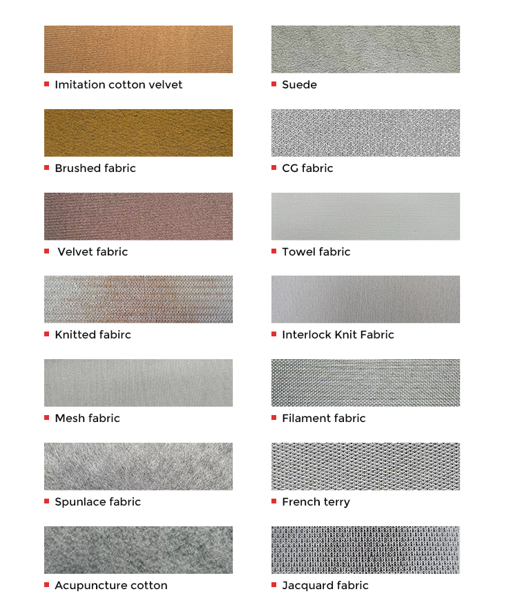 | Técnicas de apoio | Malhado 、 escovado 、 、 Terry francês não tecido |