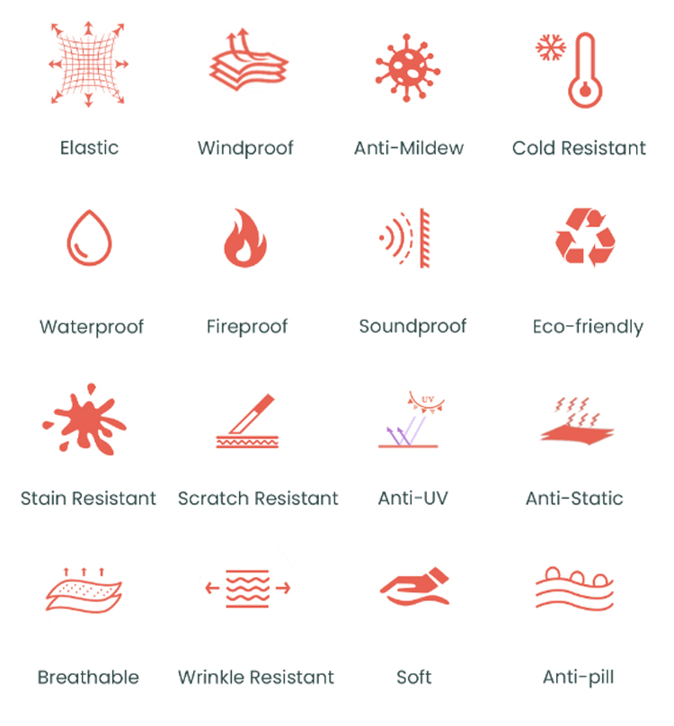 | Recurso | Resistente à abrasão 、 Anti-Mildew 、 elástico 、 impermeável |